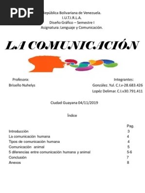 La comunicación humana es el proceso de crear significado a través de la interacción simbólica. Gráfico 11 interacción de las dimensiones y modalidades de la comunicación 119 gráfico 12 algunos constituyentes de la dimensión interpersonal 122 gráfico 13 análisis de interacción en desarrollo comunicativo temprano 127 gráfico 14 aspectos más relevantes de la competencia interactiva 129 gráfico 15 visión global del modelo sistémico de la comunicación humana interpersonal 137. La comunicación gráfica es el "proceso de trasmitir mensaje por medio de imágenes visuales que están en una superficie plana, se usan dos tipos de imágenes: Por proceso se entiende que los pasos que se deben tomar para comunicarse deben respetar un orden para alcanzar el resultado esperado. Además, como todo se entiende mejor si se tiene una ayuda visual, se utilizará un organizador gráfico para ilustrar el tema. Si necesitamos que alguien realice una determinada acción podemos hablarle o escribirle una carta;